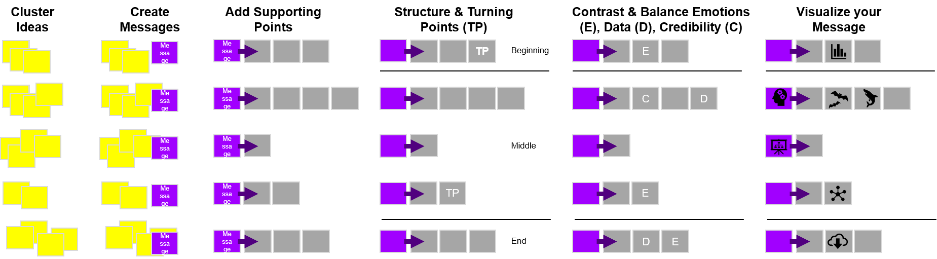 The process to create a presentation, from Nancy Duarte, Resonate, page 143